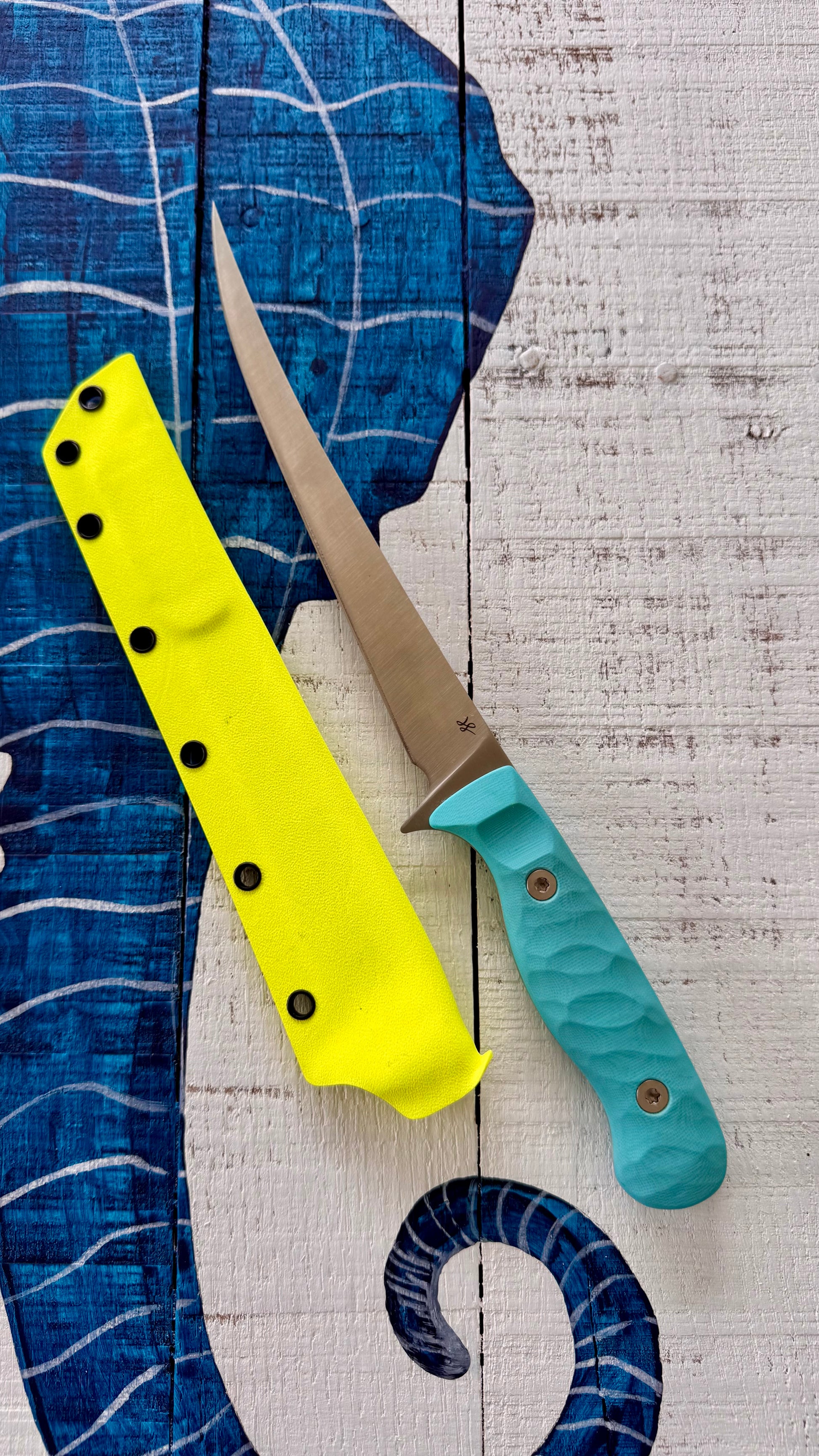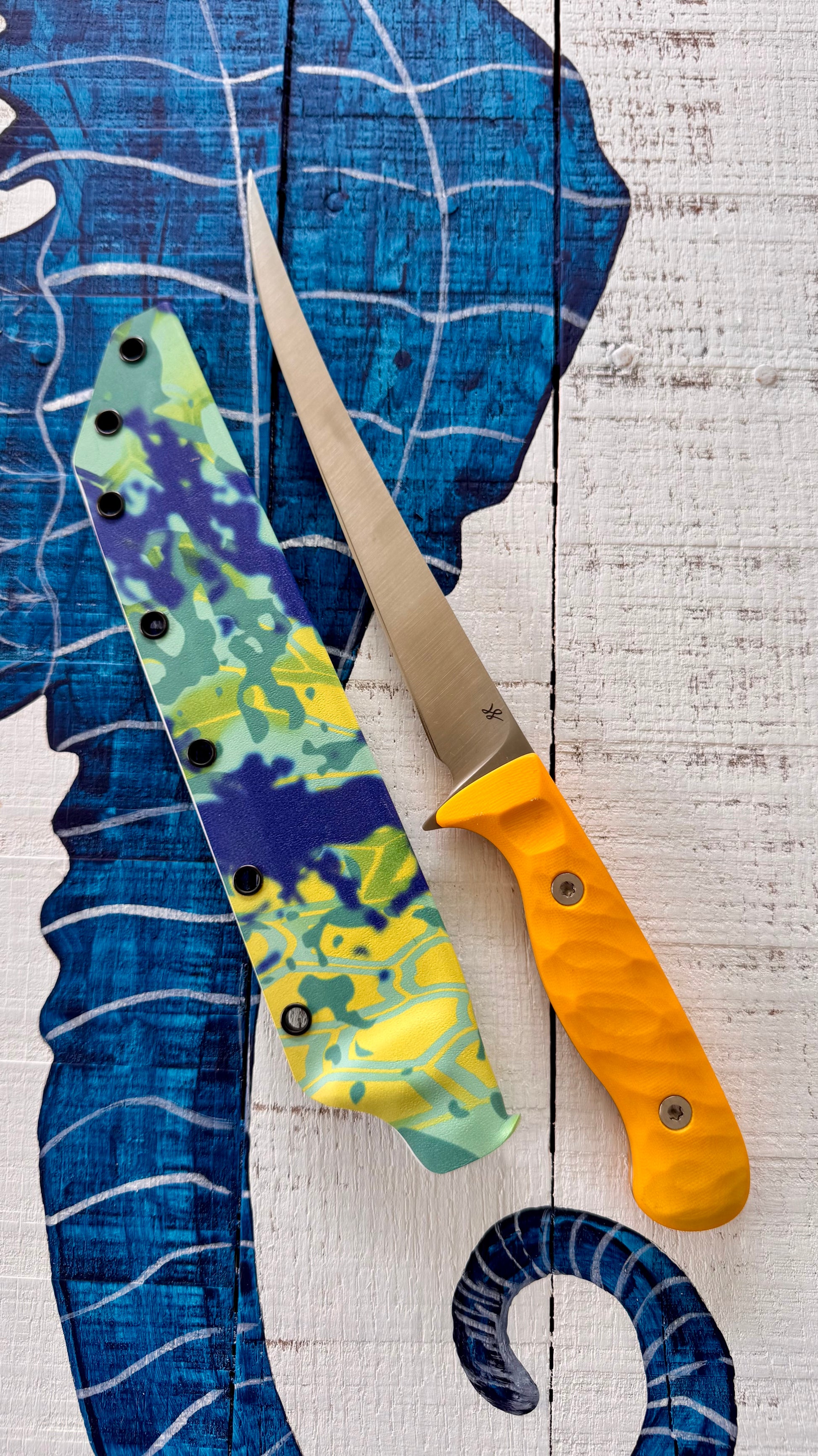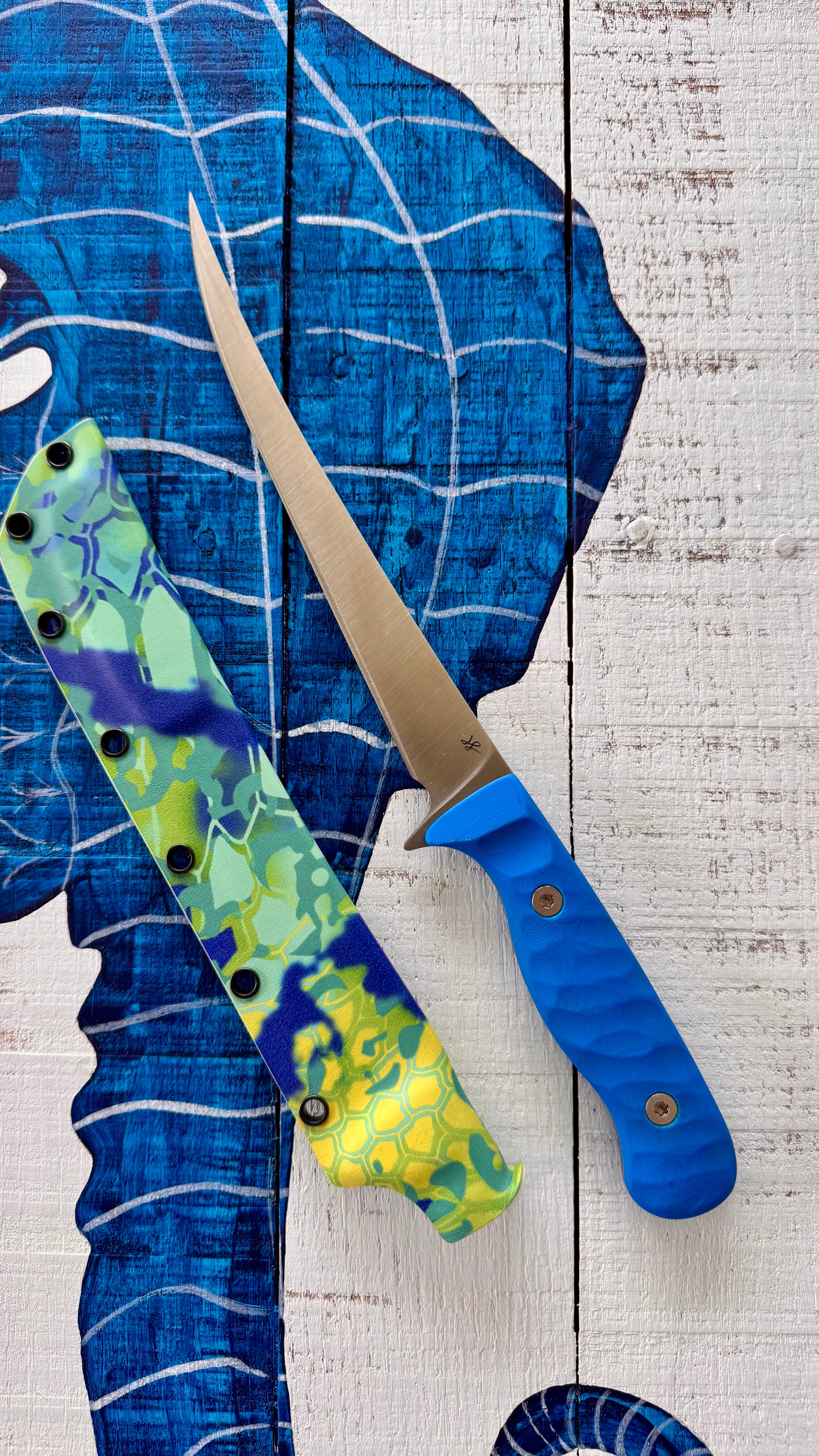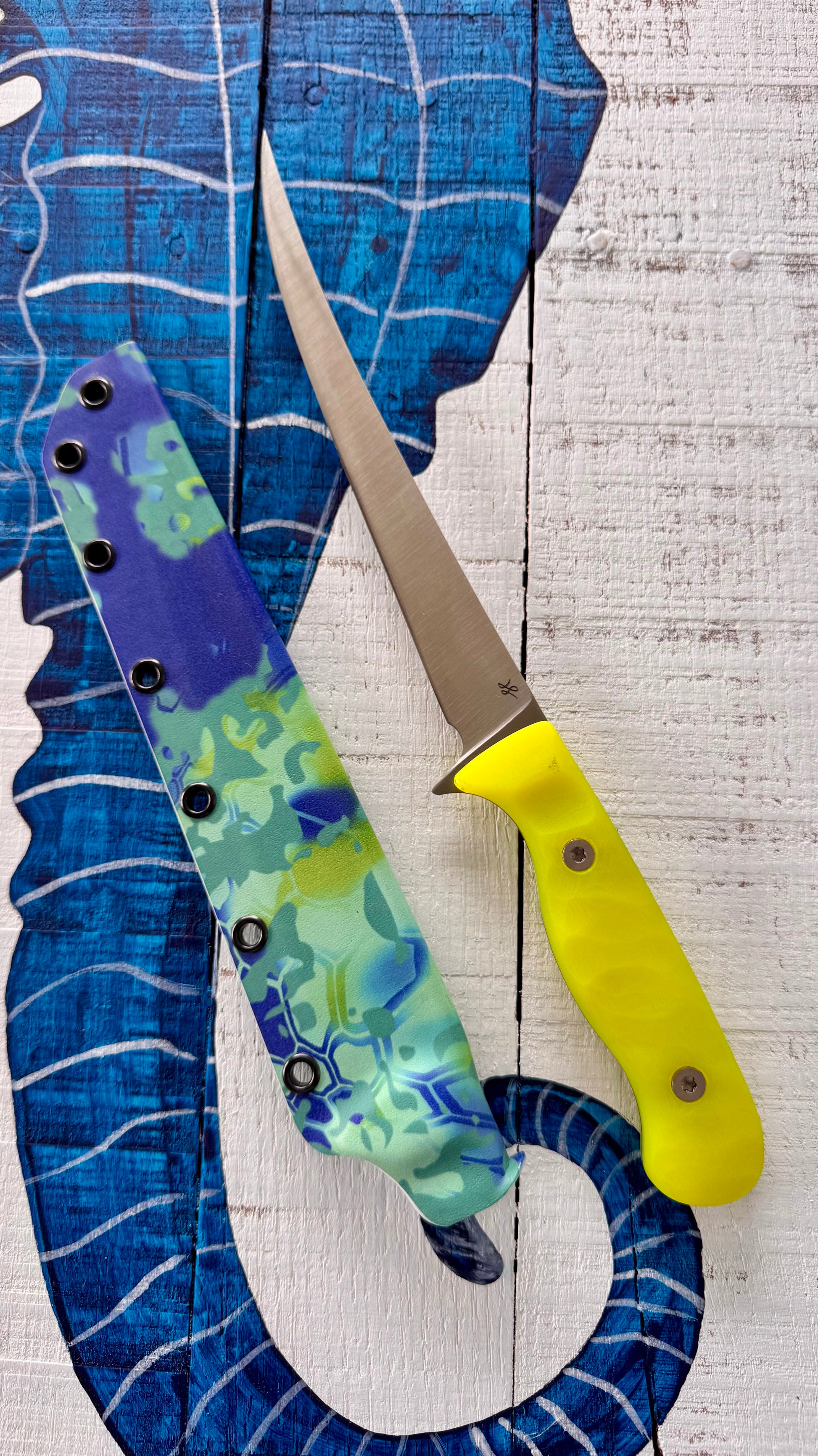 These knives are made by hand, as such there will be minor variances to each. The patterned sheaths may appear slightly different as well due to material patterning.